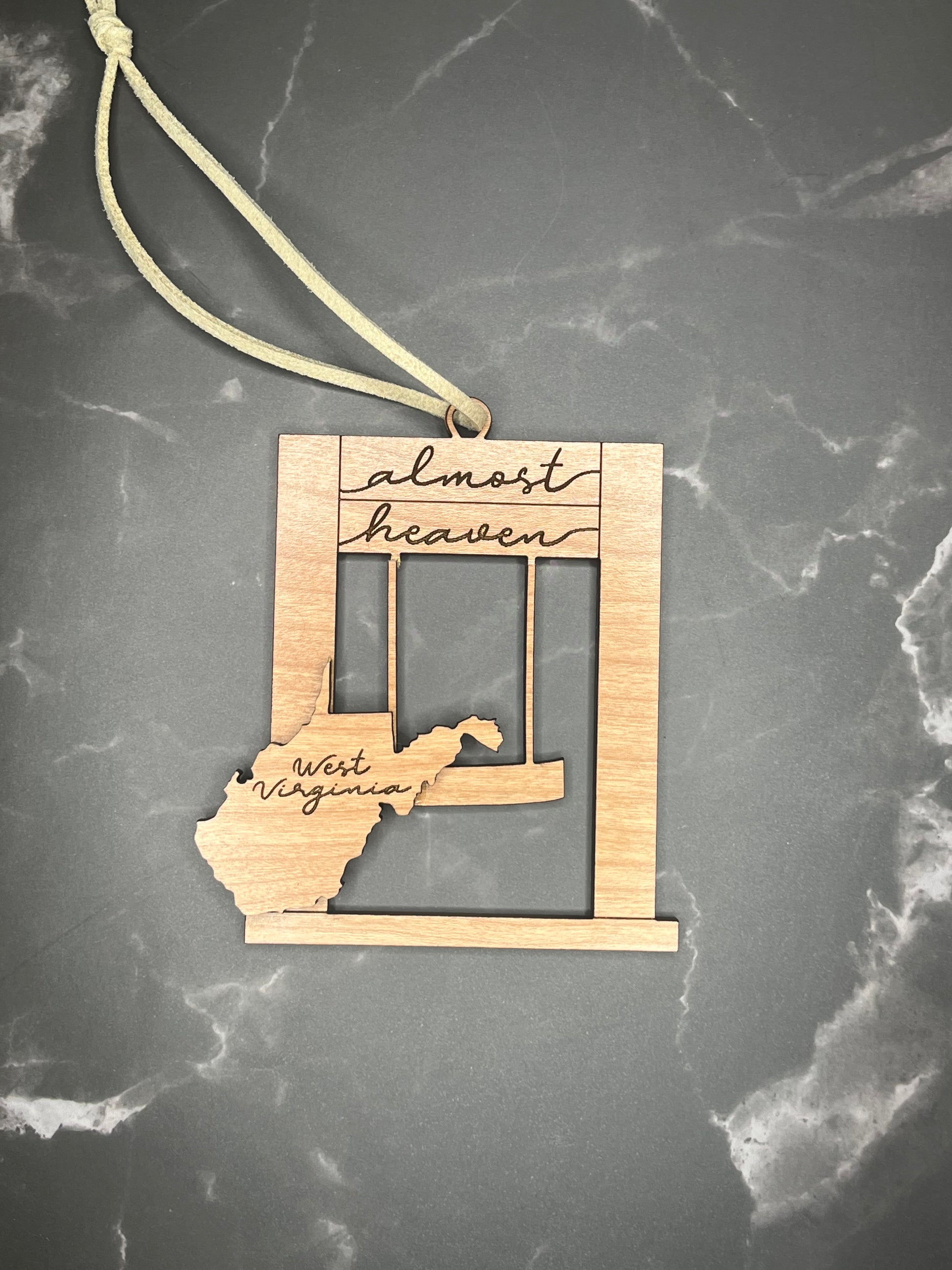Bring a touch of West Virginia charm to your home with this beautiful laser-cut wooden ornament inspired by the famous Almost Heaven Swings. Featuring a delicate porch swing design framed with the phrase “almost heaven” and a cutout of the state of West Virginia, this piece captures the simple beauty of mountain living.